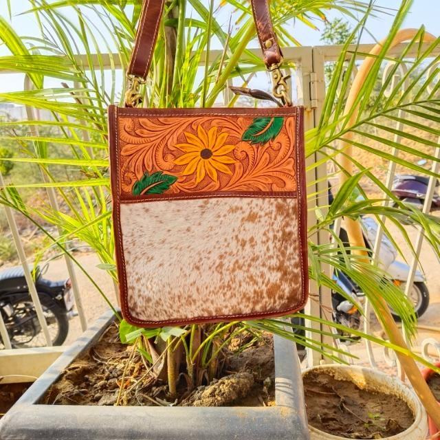 Hot Selling Women's Suede Genuine Leather Fringe Handbag Canvas Lining Western Stylish Hair Hide Sling Purse Bags for Summer