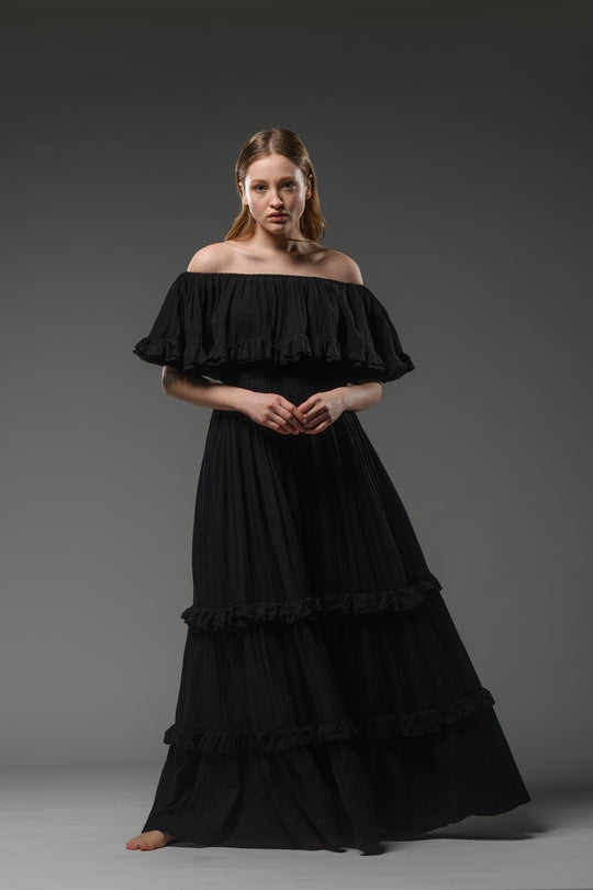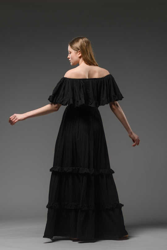 Western Stylish Modern Women Cotton Black Women Off Shoulder Tie and Dye Long Maxi Dress Beach Party Wear Dress Gift for Her