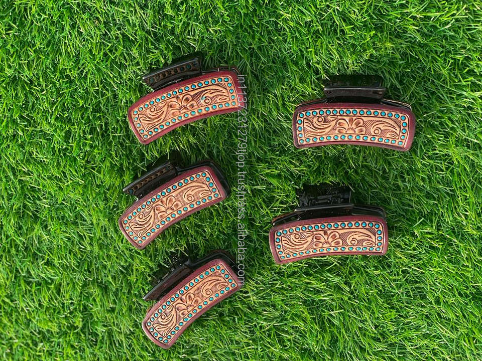 Western Tooled Leather Hair Clip Western Cowgirl Hair Claw Clip Cowhide Tooled Leather Claw Clip Hair Accessories