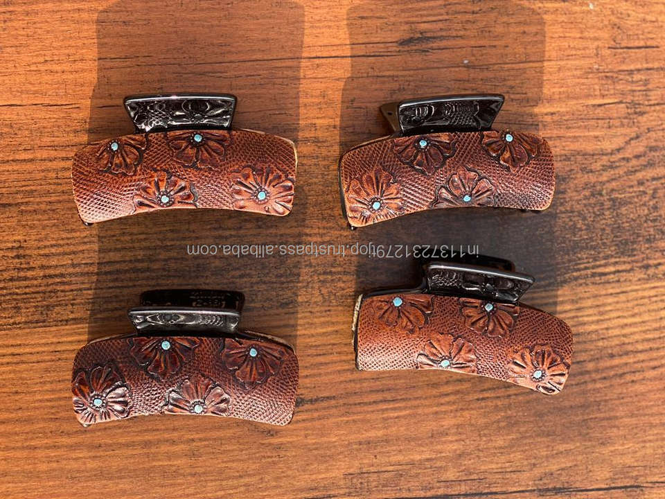 Western Tooled Leather Hair Clip Western Cowgirl Hair Claw Clip Cowhide Tooled Leather Claw Clip Hair Accessories