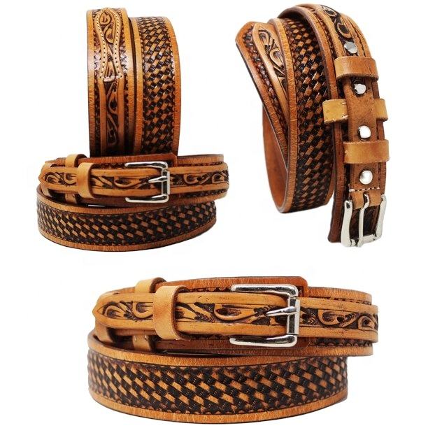 Western Cowhide Leather Cowboy Belt with Fully Hand-Tooled Design Custom Logo & Size Options Best Price for Men Women Wholesale