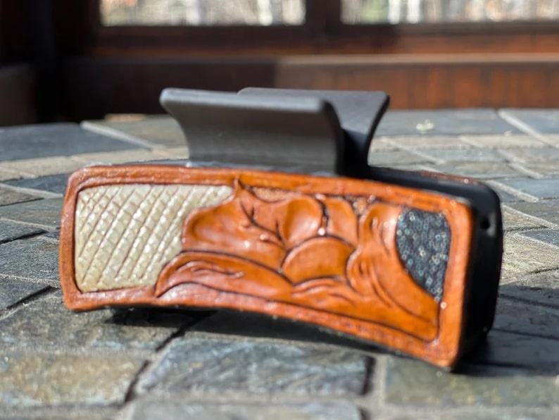 Style:Hair clip from tooling leather