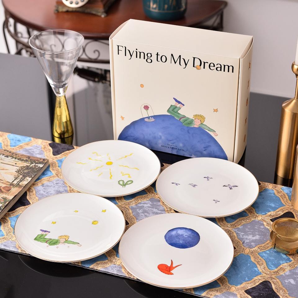 Western-style Dinnerware Set Ceramic Tableware Bone China Shallow Plates Gift Box Personal Use Present Dishwasher Safe