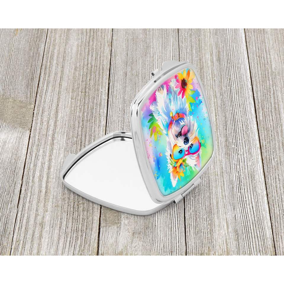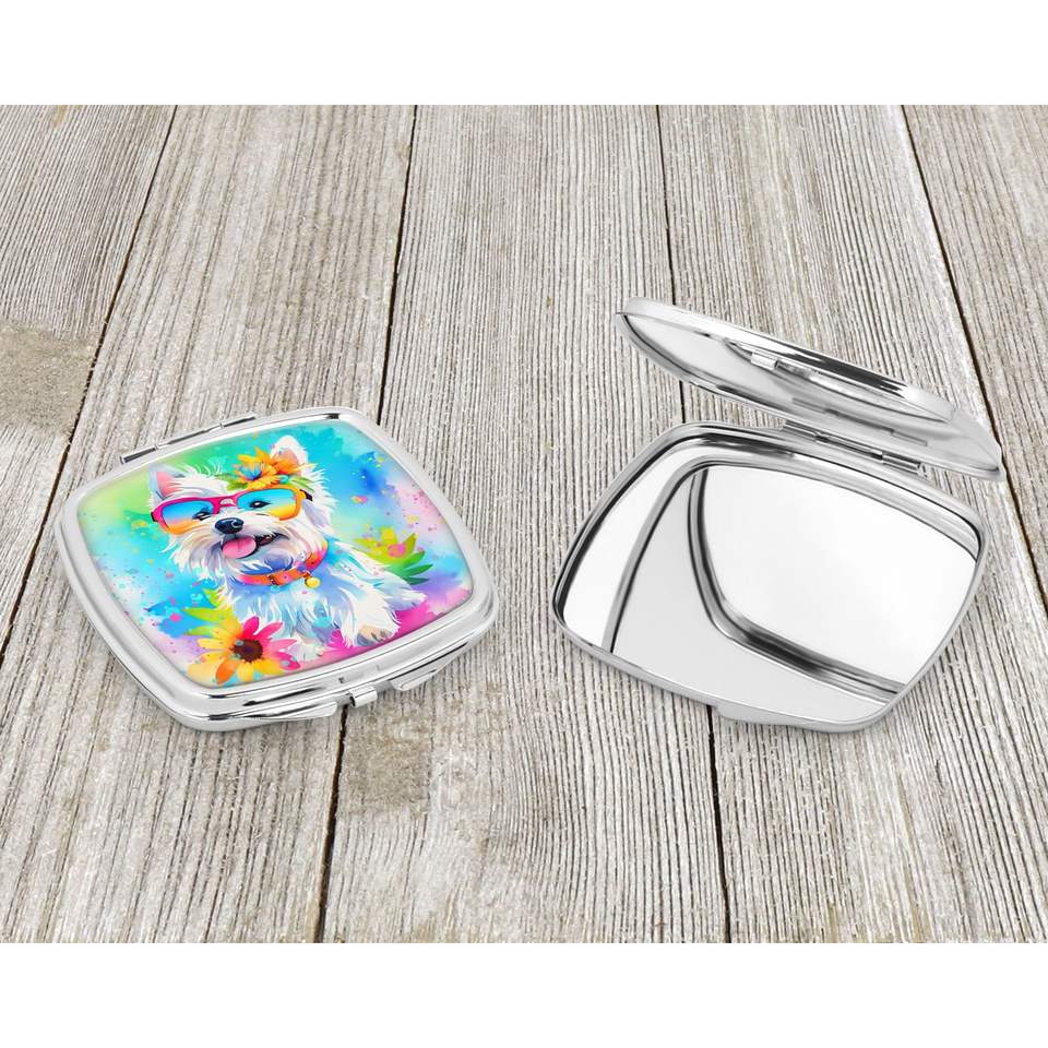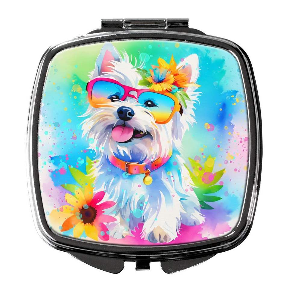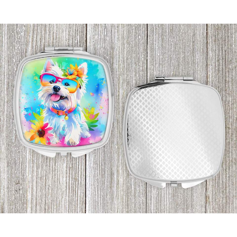 Westie Hippie Dawg Compact Decorative Folding Handheld Makeup Mirror Pocket Travel Size Gift for Women and Girls