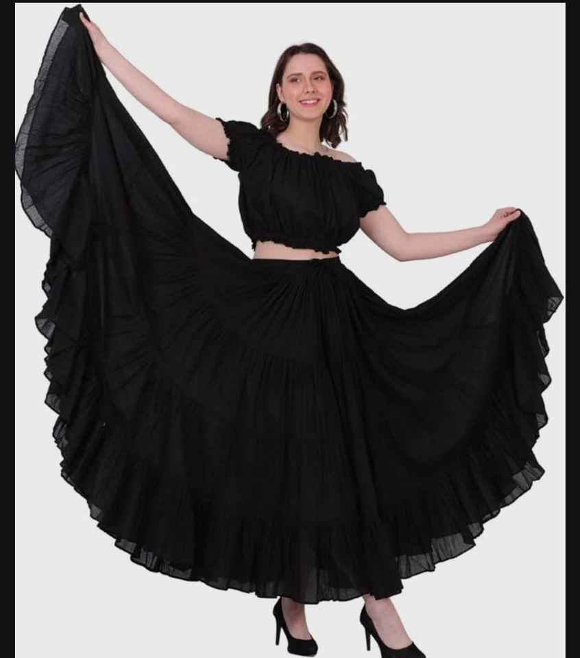 Wevez Women's 32 Yard Cotton 4-Tiered Tribal Belly Dancing Long Skirt Flared Black Long Skirt Casual Solid Pattern Plain Dyed