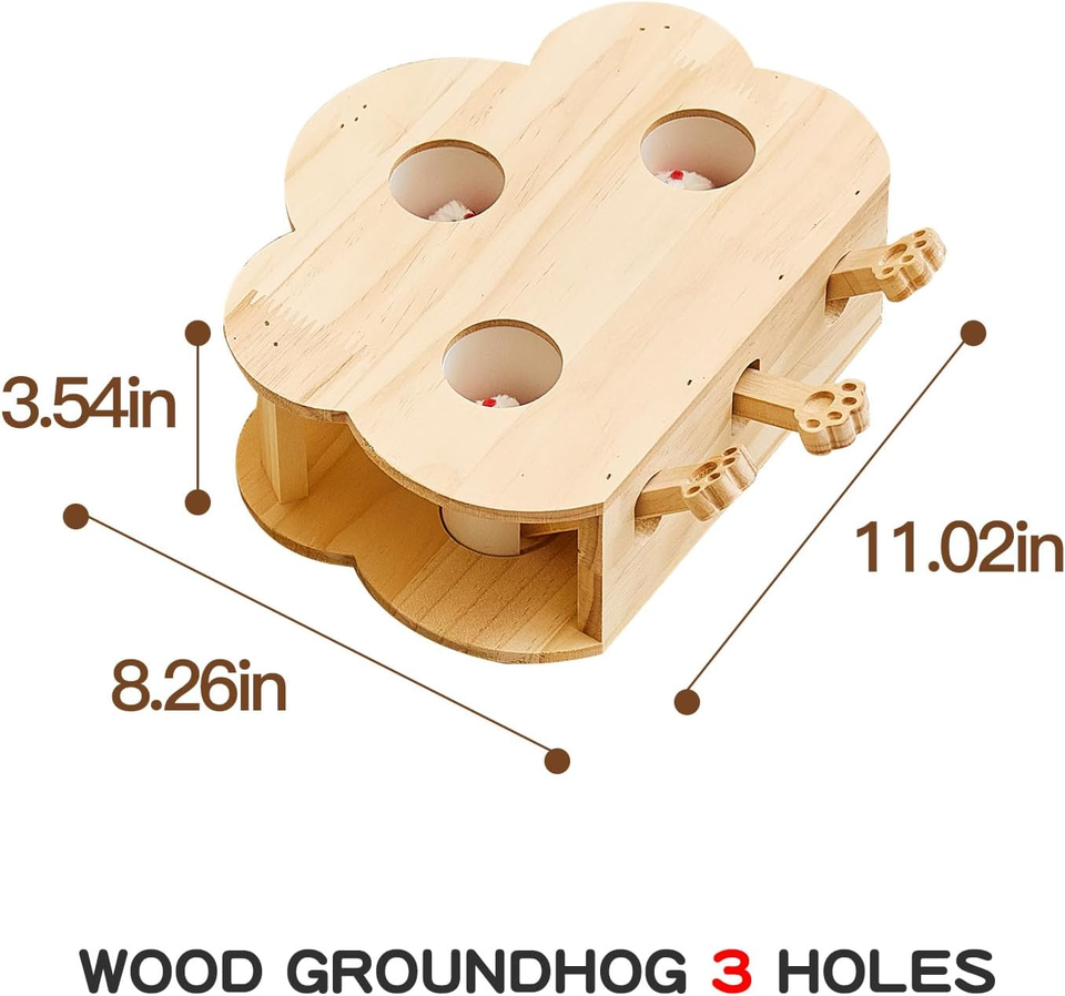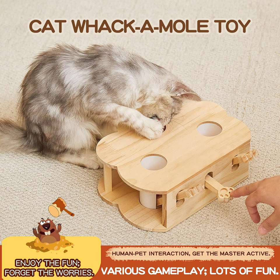 Whack-a-Mole Interactive Modern Wood Cat Toy ODM OEM Indoor Pet Puzzle for All Ages Exercise 3 Holes for Play