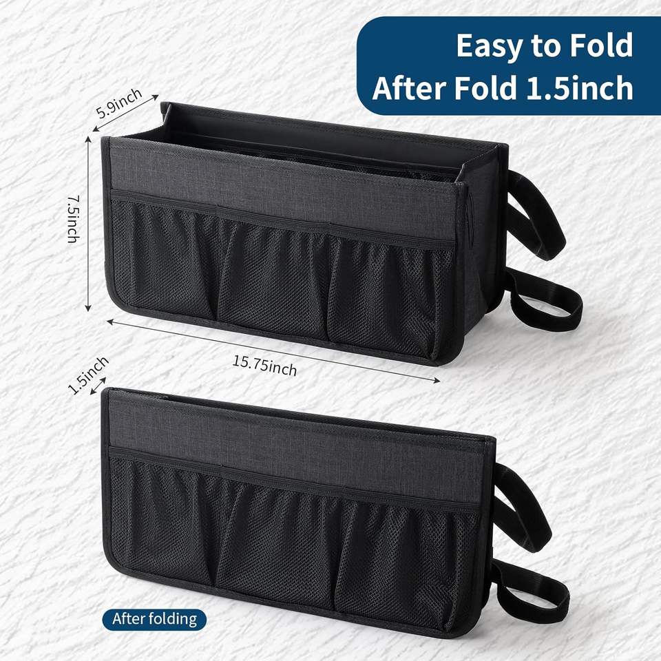 Wheelchair Side Bag, Armrest Storage Pouch with Cup Holder and Reflective Strip for Wheelchairs, Walkers or Rollators (Black)