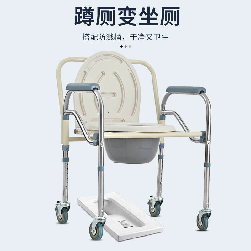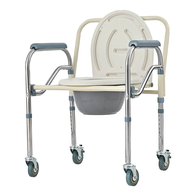 Wheeled Commode Chair Adjustable Height 6 Levels With Brake For Elderly Hospital Use