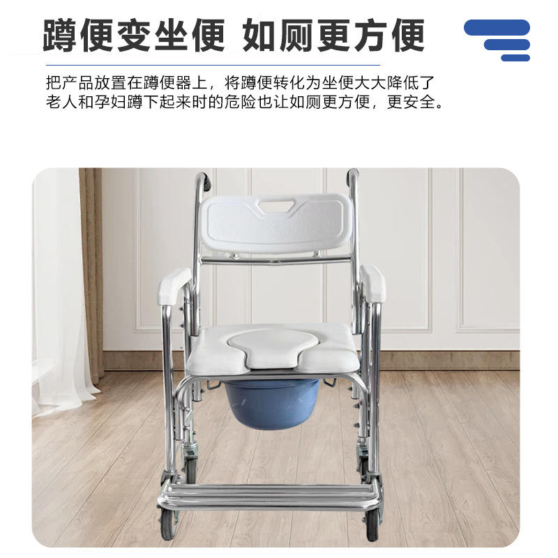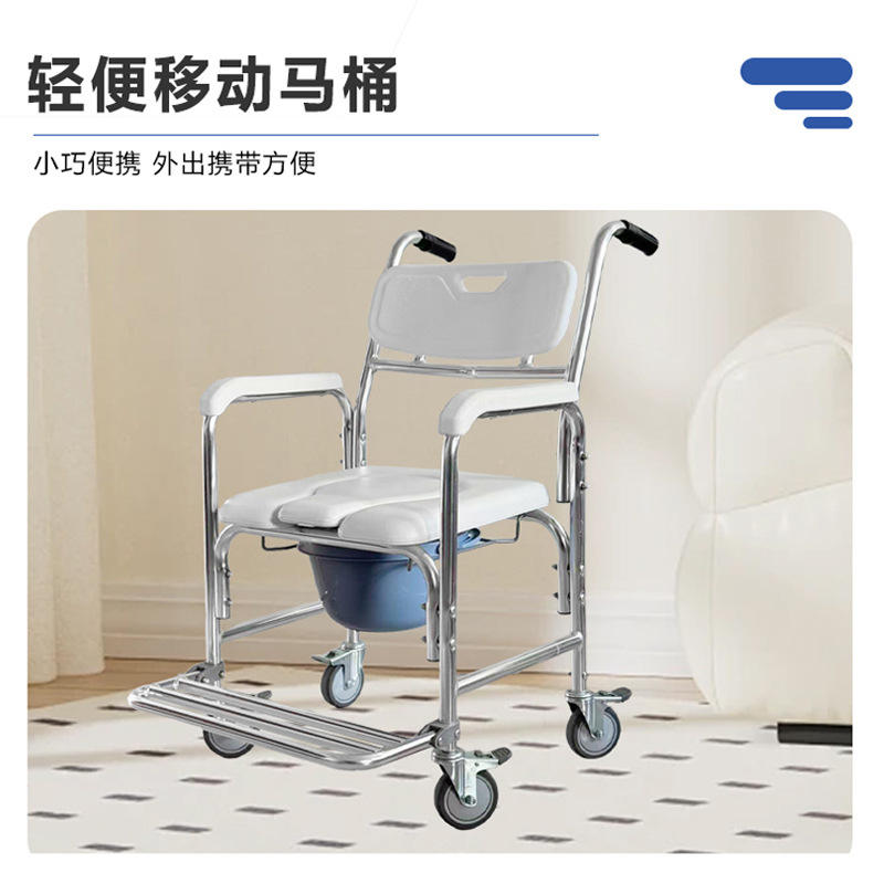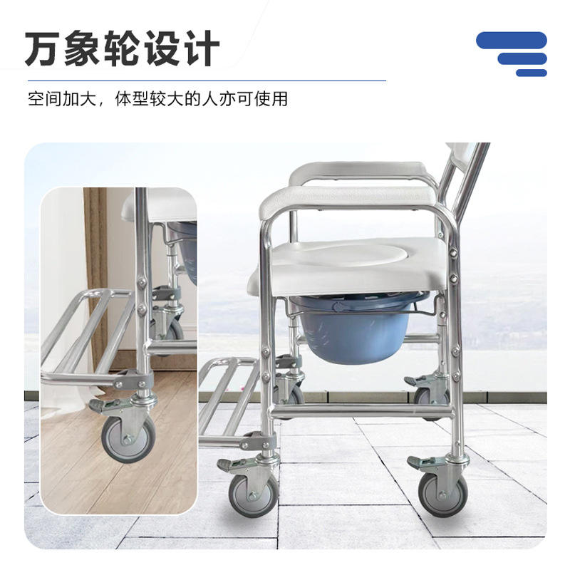 Wheeled Commode Chair Stainless Steel With Wheels For Elderly Bathroom Use