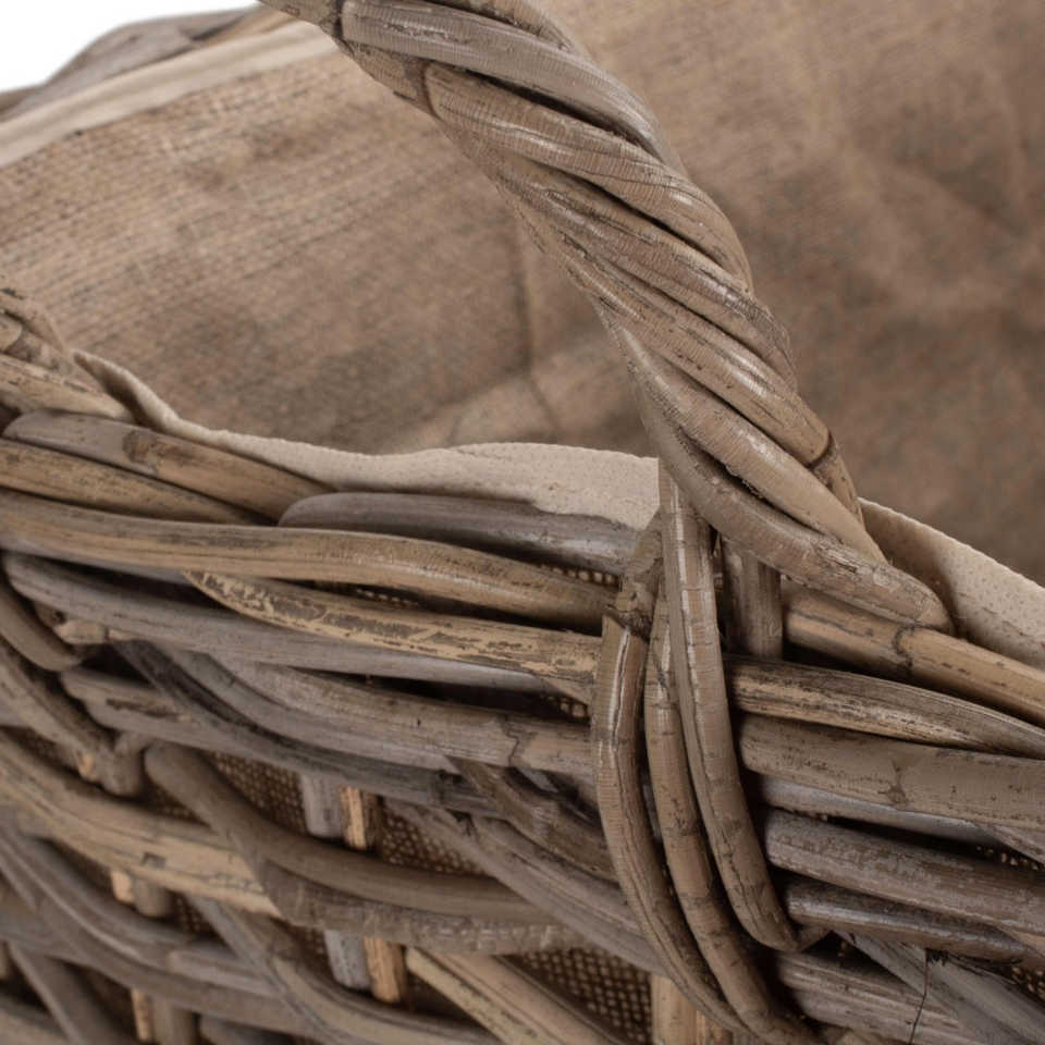 Wheeled Hessian Lined Rattan Log Basket in Small & Large Sizes for Convenient Storage