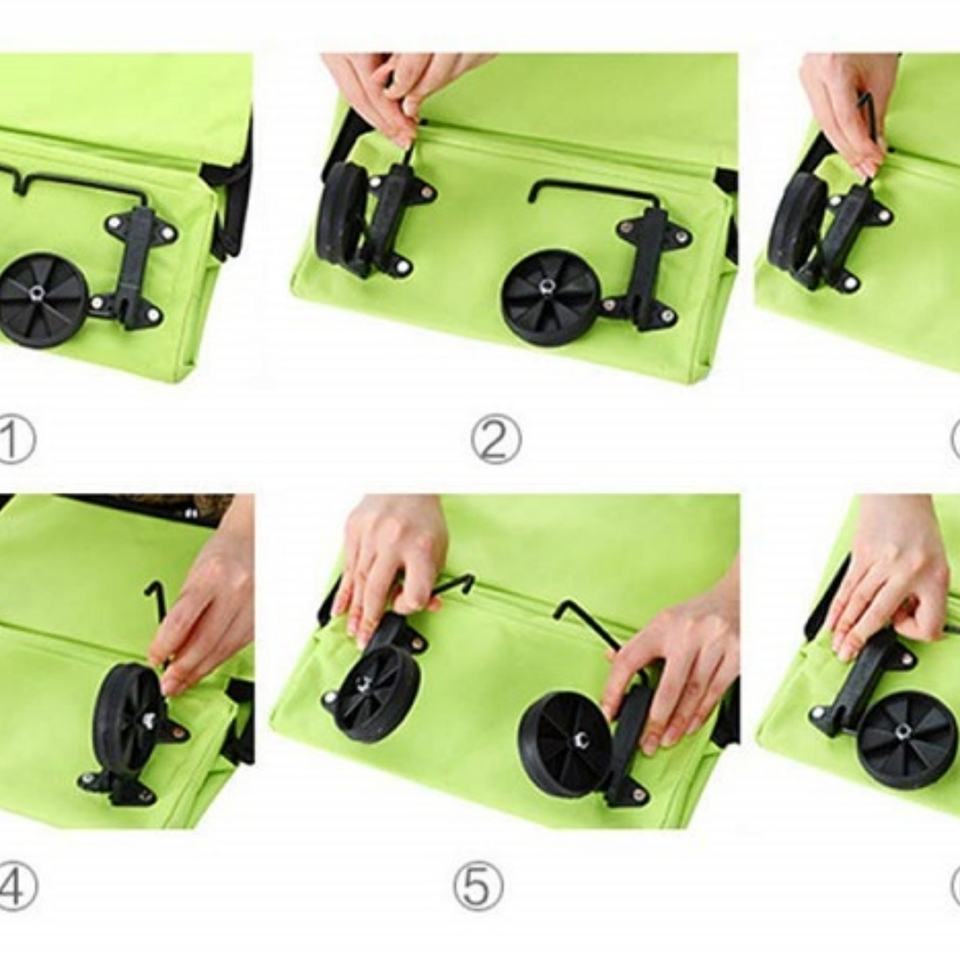 Product name:Oxford Foldable Tote Bag Shopping Cart Trolley Bag with Wheels