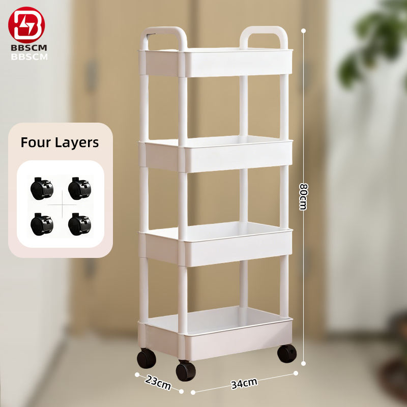 Wheeled Mobile Storage Rack Trolley Organizer Plastic Kitchen Organizers Household Cart Mobile Trolley Toilet Rack Home Supplies
