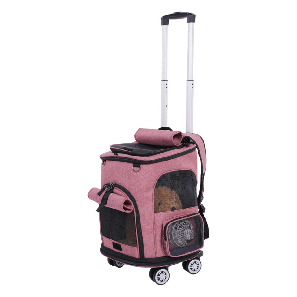 Wheeled Pet Carrier Backpack Breathable Two in One Comfort Cat Backpack Removable Rolling Wheels Trolley Bag