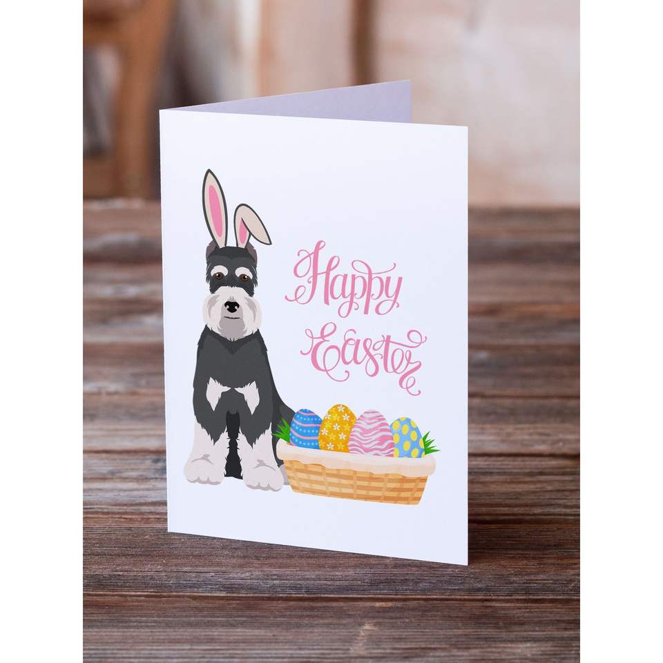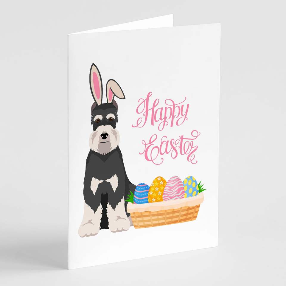 Whimsical A7 Size 5x7 Black Silver Schnauzer Easter Greeting Cards Pack of 8 Blank Note Cards with Envelopes
