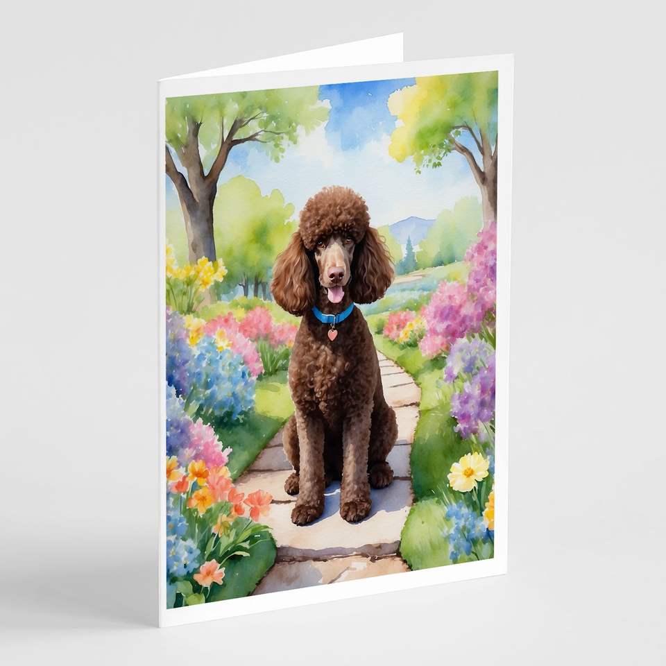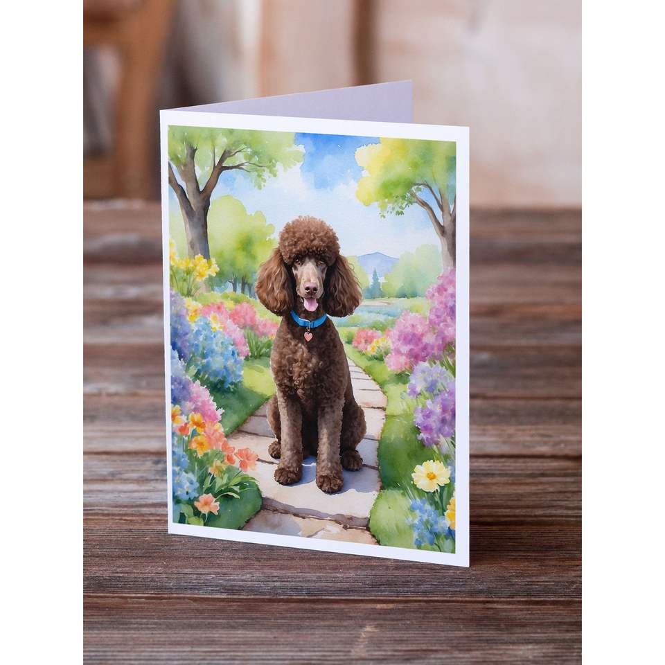 Whimsical A7 Size 5x7 Chocolate Poodle Spring Path Blank Note Cards Pack of 8 Envelopes Greeting Cards