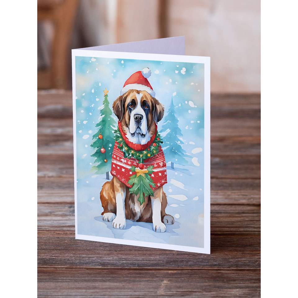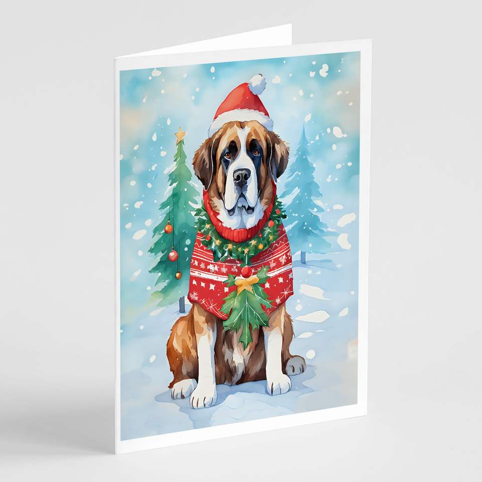 Whimsical Saint Bernard Christmas Greeting Cards Pack of 8 Blank A7 Size 5x7 Note Cards with Envelopes
