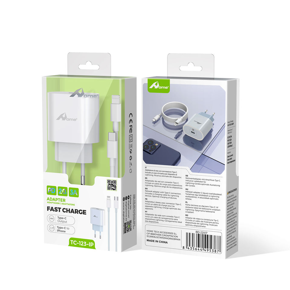 White 20W PD 3A TYPE C to IP Charger TC-123-IP USB Adapters & Charger Consumer Electronics