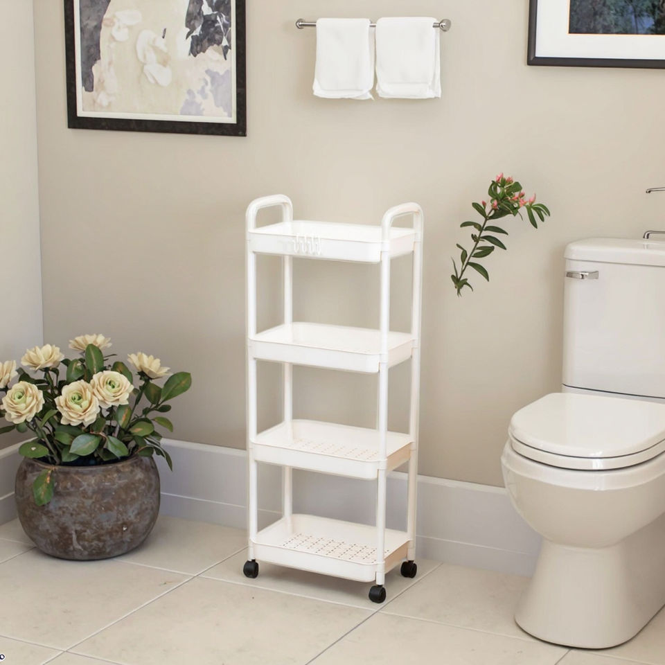 White 4-Tier Classic Multifunction Storage Rack Foldable Metal Plastic Wheeled Kitchen Bathroom Eco-Friendly Easy Clean US