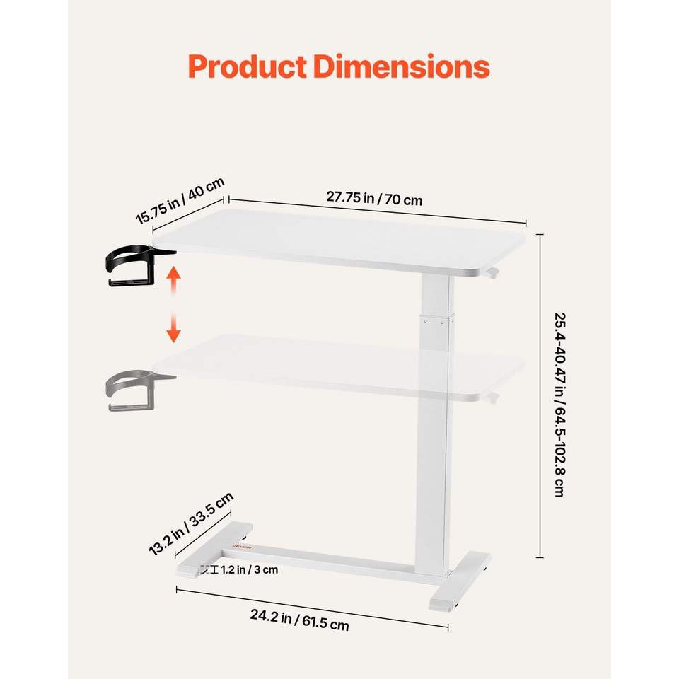 White 4-Wheel Height Adjustable Overbed Table Portable Particleboard Bed Desk Cup Holder for Home Office Study Rolling Desk