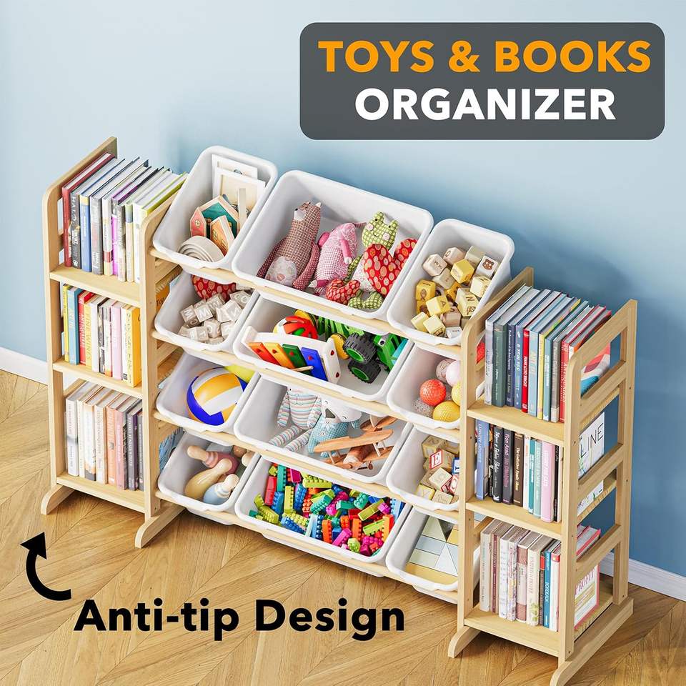 White 52 Inch Bamboo Toy Storage Organizer for Kids