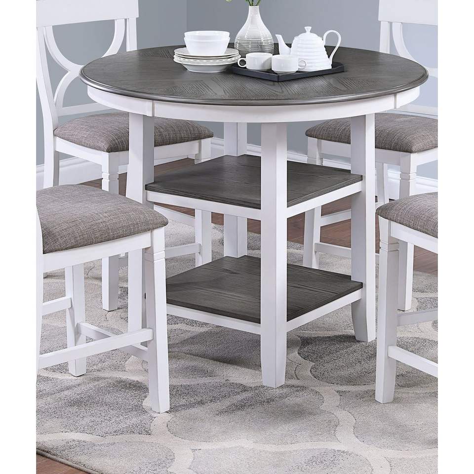 White 5pc Dining Set Unique Design Counter Height Table W/Storage Shelve 4 Chairs Padded Seat Back-Unique Style for Dining Room