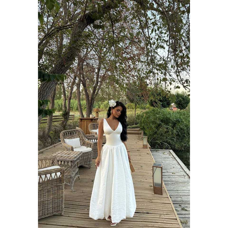 White A-Line Strappy Evening Dress Simple Party Style with Embroidered Flowers XS to XL Sizes ODM Woven Fabric Prom Dresses