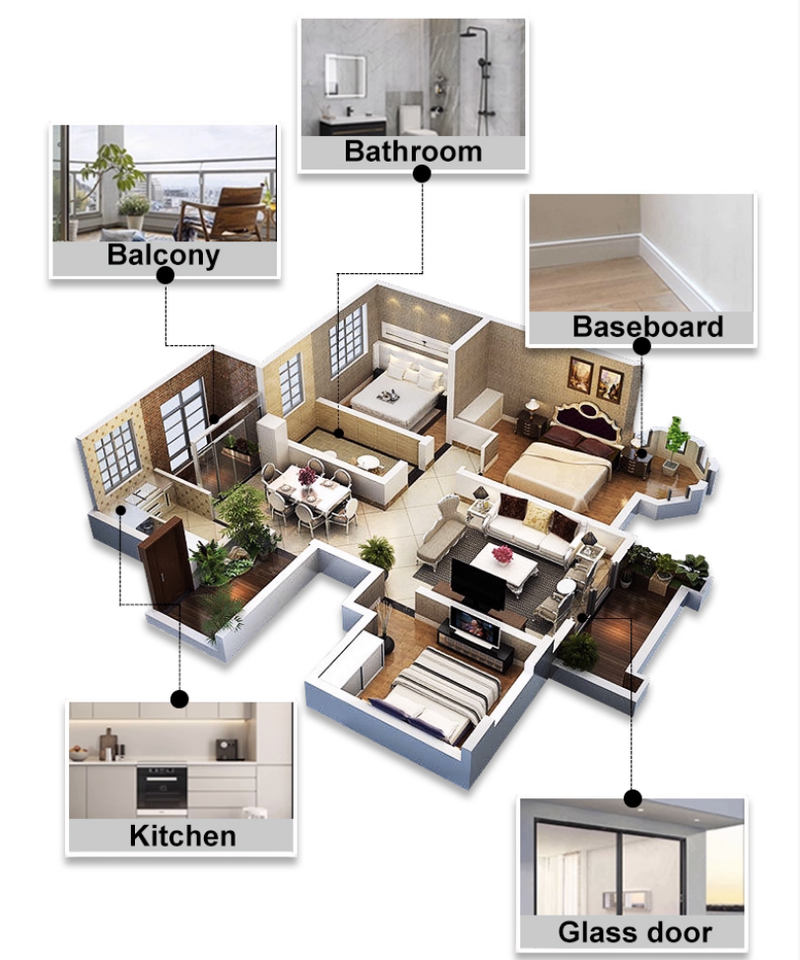 Application:window frame door wall gap skirting line bathroom toilet kitchen