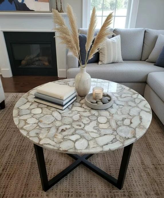 White Agate Round Coffee End Table Top Eco-Friendly Modern Art Luxury Sofa Center Piece Unique Furniture for Home Decor