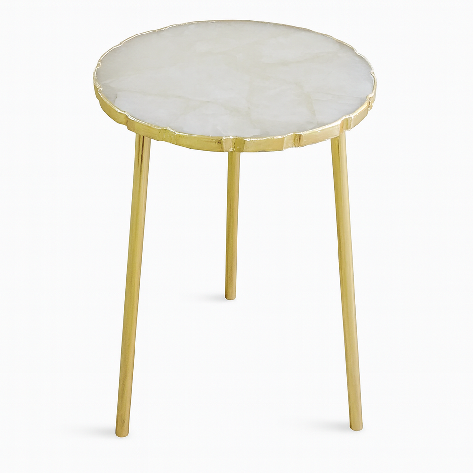 White Agate table with Gold Plated Edges Natural Agate Slice Side Table Luxury Home Decor Agate Coffee Table Crystal