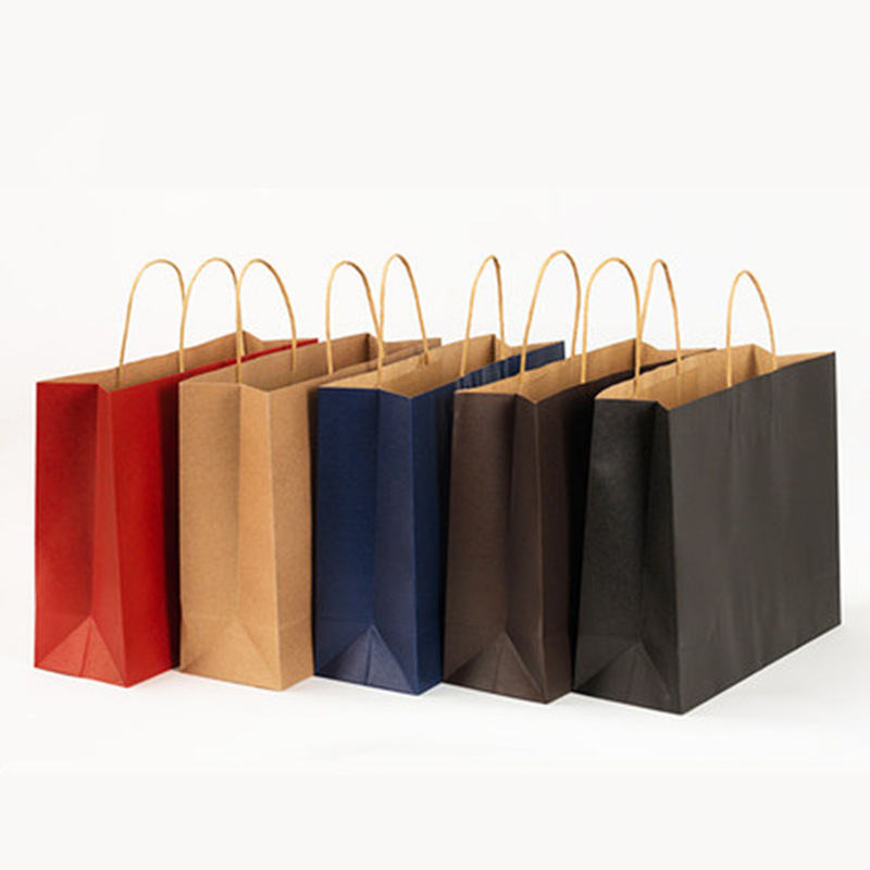 White and Brown Kraft Paper Twisted Handle Shopping Carrier Bag With Logo Printed