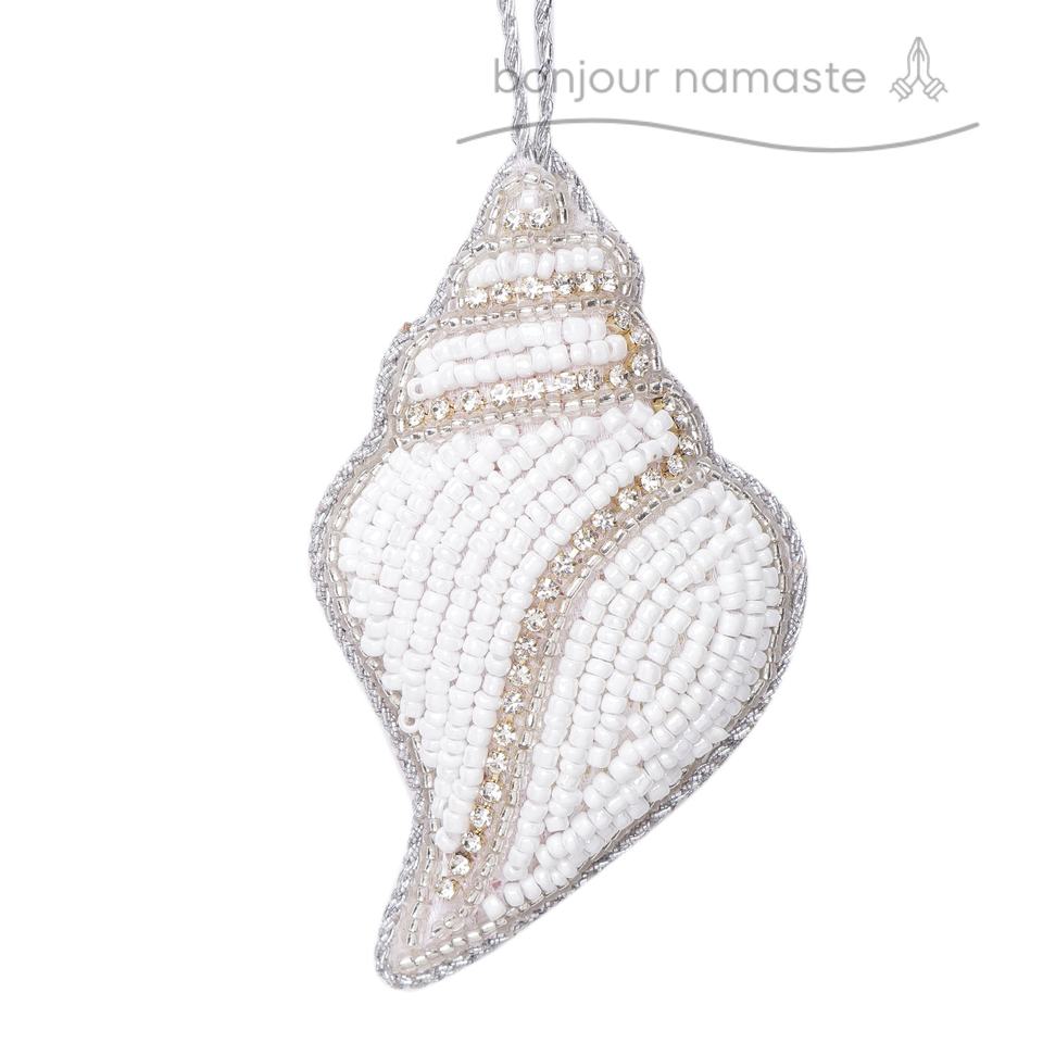 White And Silver Conch Shell Ornament Elegant Coastal Christmas Decoration Wholesale | Chic Boutique Look