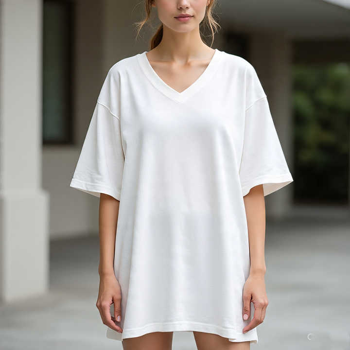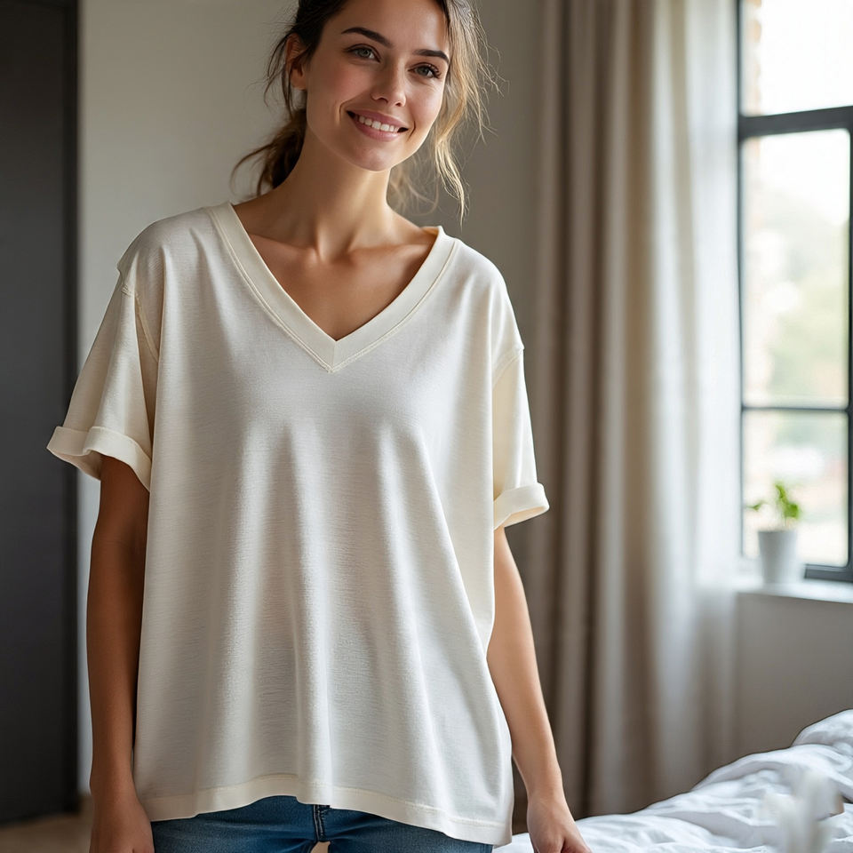 Product name:V-Neck Drop Shoulder T Shirt Women