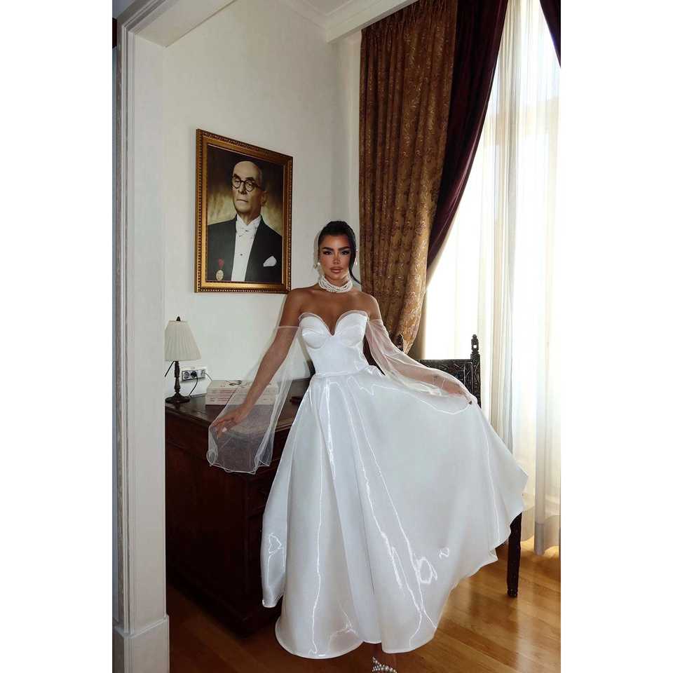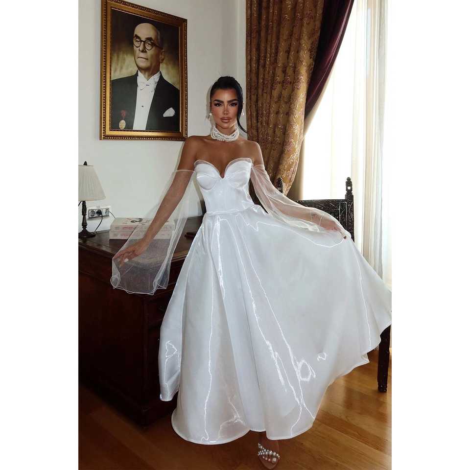 White Ball Gown Wedding Dress with Long Train Strapless Pleated Sweetheart Collar Luxury Simple Style for Brides Mother of Bride