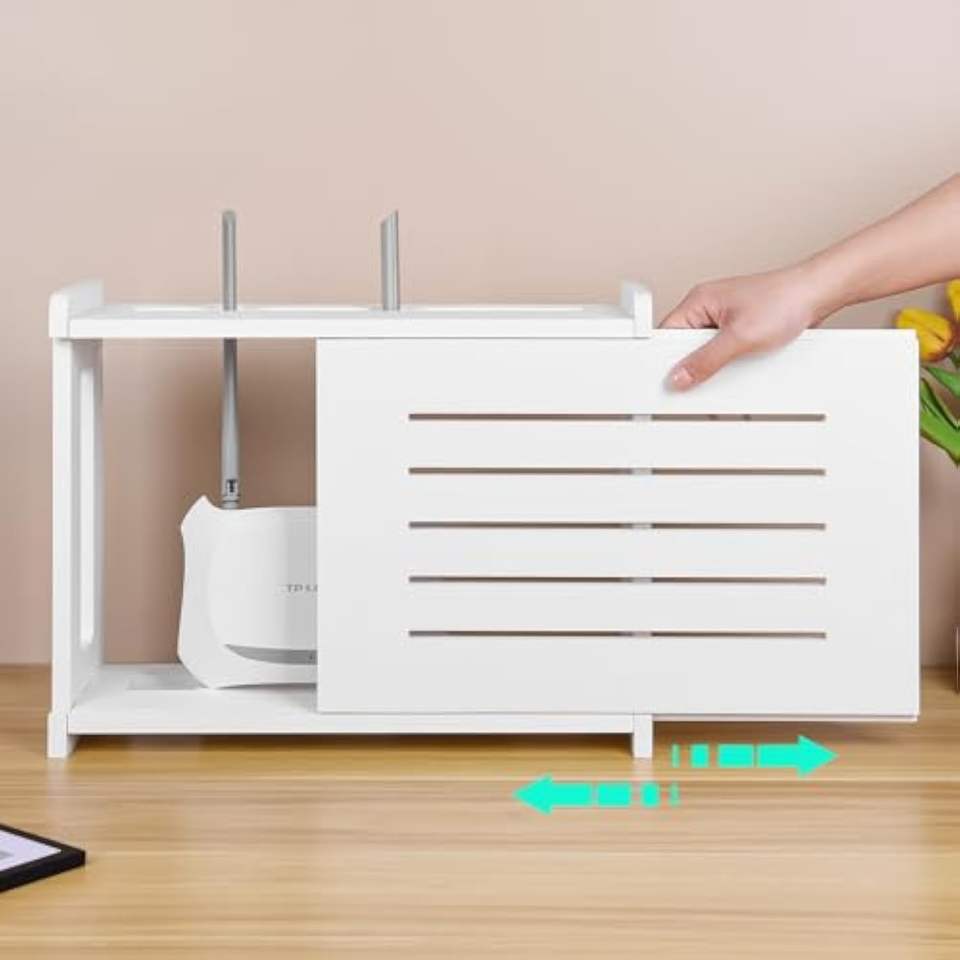product:White Bamboo Wood Wall Mounted WiFi Router Storage Box