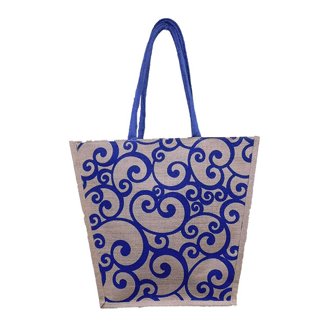 White Base Blue Flower Print Natural Eco-friendly Reusable Burlap Long Women Shopping Ladies Jute Tote Bag with logo