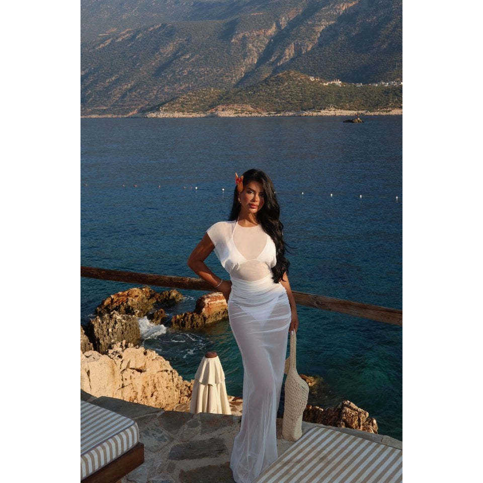White Basic A-Line Dress for Women Casual Office Lady Style Square Collar Dropped Waist Elegant Fashionable One Fits Most Day