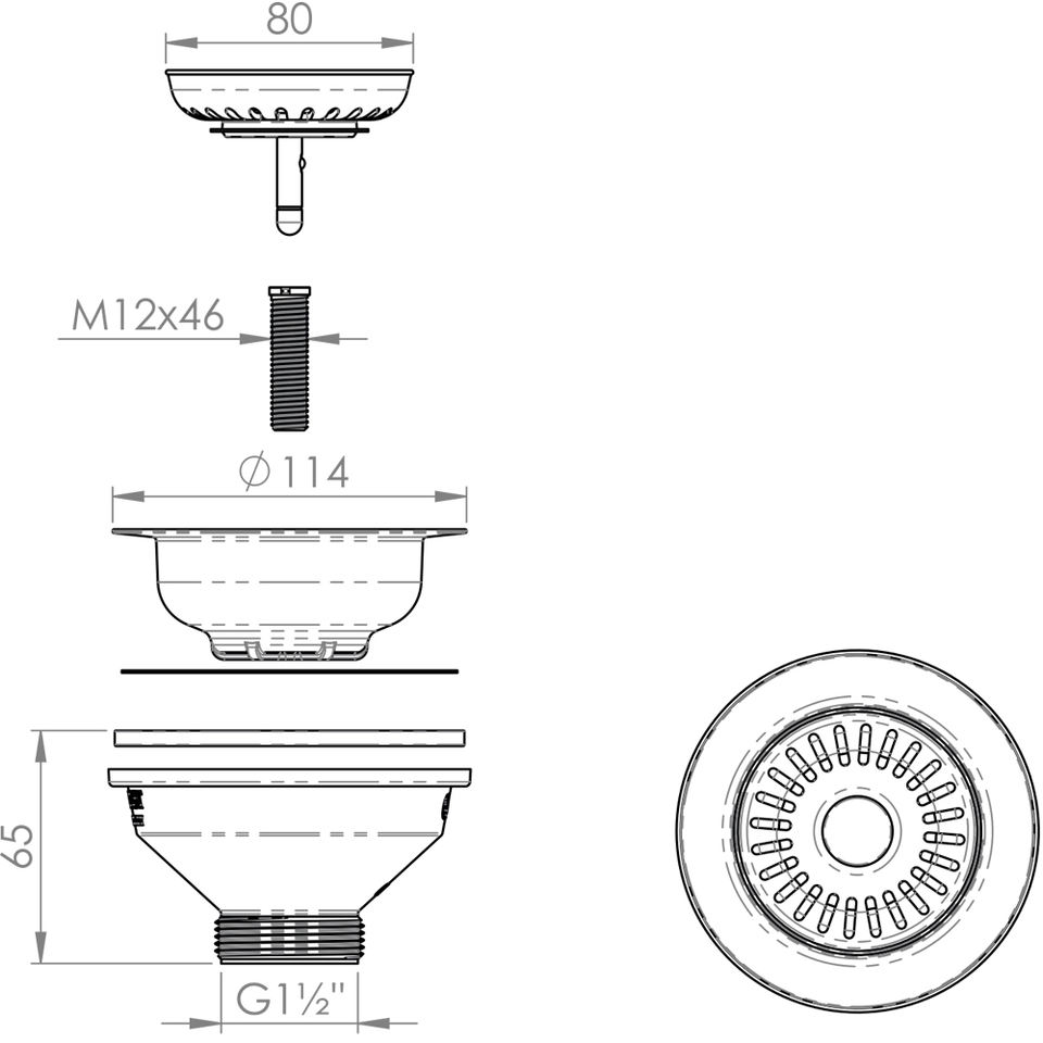 White Basket Cap Sink Drain Ø 114 for Drain Cleaners