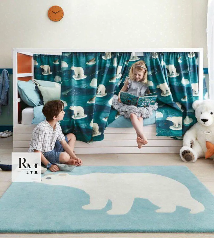 White Bear Handmade Wool Tufted Rug Unique Animal Printed Carpet for Kids Room Living Room 5x8 8x10 Feet Area Rug Home Floor Use