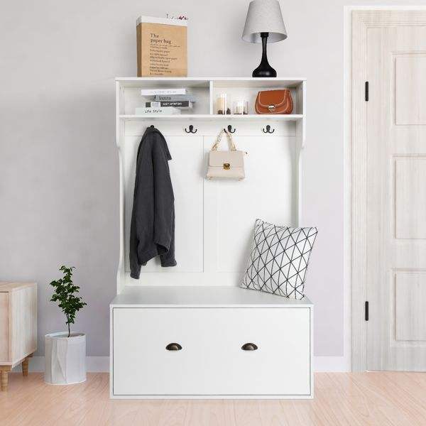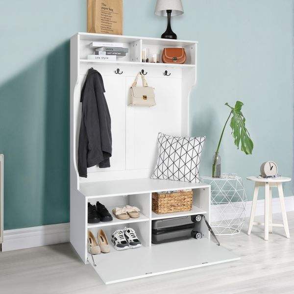 White Bedroom and Porch Storage Rack with Independent Wardrobe Manager and Multiple Clothing Hooks