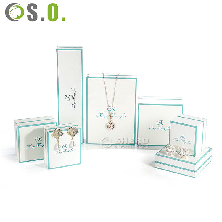White Blue High Quality Wholesale Cardboard Wedding Necklace Bracelet Ring Box Gift Custom Jewellery Packaging Jewelry Box