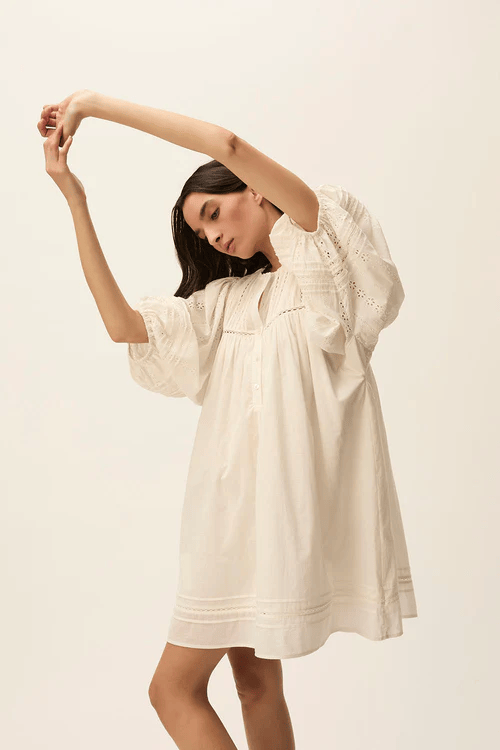 White Bohemian Style Cotton Dress with Eyelet Embroidery Eco-Friendly Washable Available in Bulk Quantity for Women Casual Days