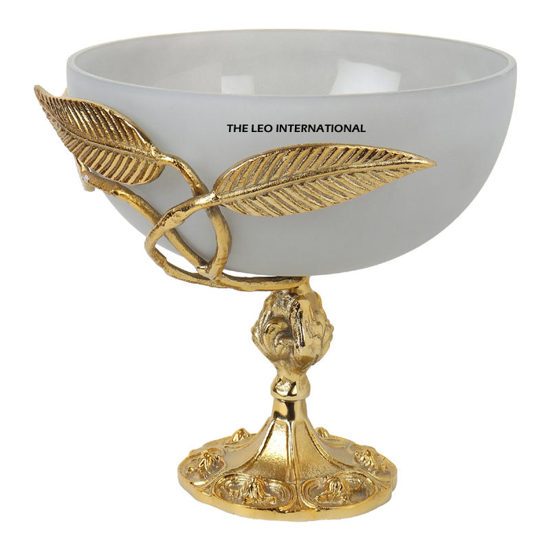 White Bowl Eco-friendly Brass Bowl Stand for Luxury Hotels Restaurants Bulk Quantity Customized Golden Leaf Shape