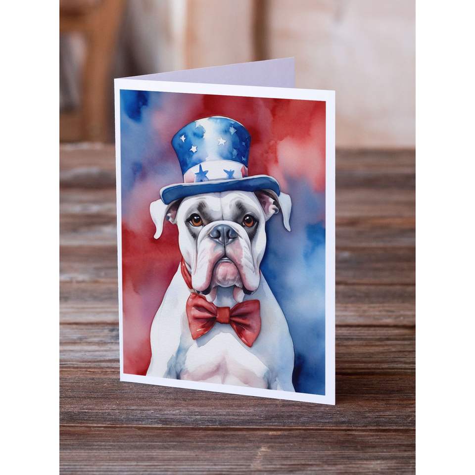 White Boxer Patriotic American Greeting Cards Pack of 8 A7 Size 5x7 Blank Note Cards with Envelopes Whimsical Design