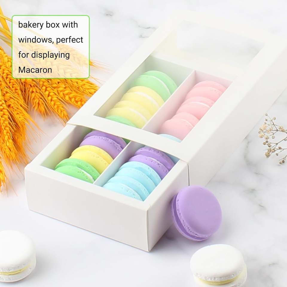 White Brown Long Rectangle Drawer Pvc Transparent Partition Interval Design Mark Cookie Macaron Box Packaging