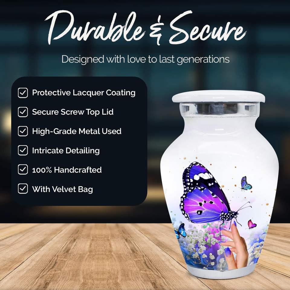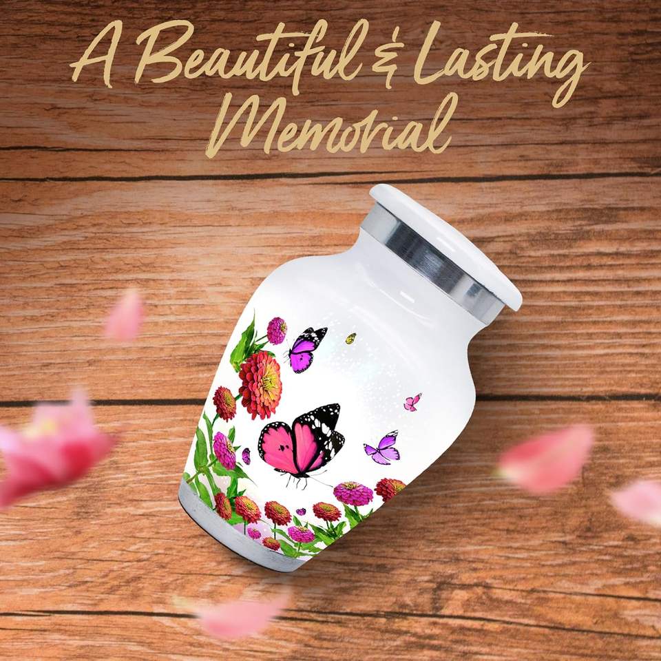 White Butterfly Keepsake Urns - Small Urns for Ashes Set of 4 with Box & Bags - Mini Urns for Human Ashes Keepsake - Small White