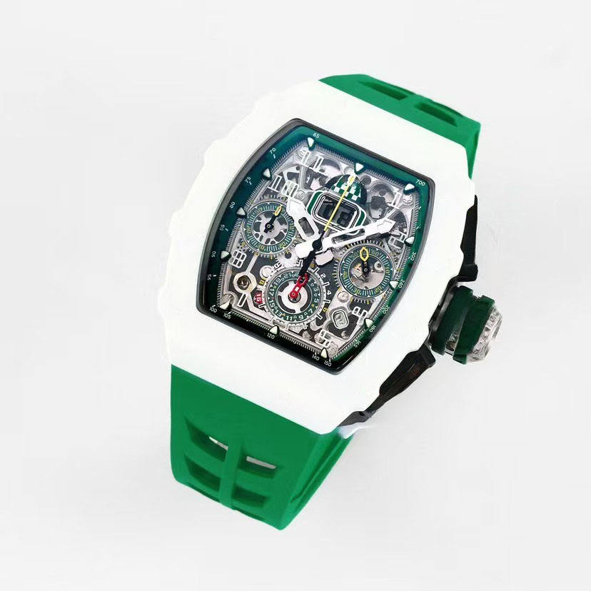 White Ceramic Classic Racing Model 1103 Flyback Chronograph Tachometer Second Hand Power Reserve Men's Sports Watch