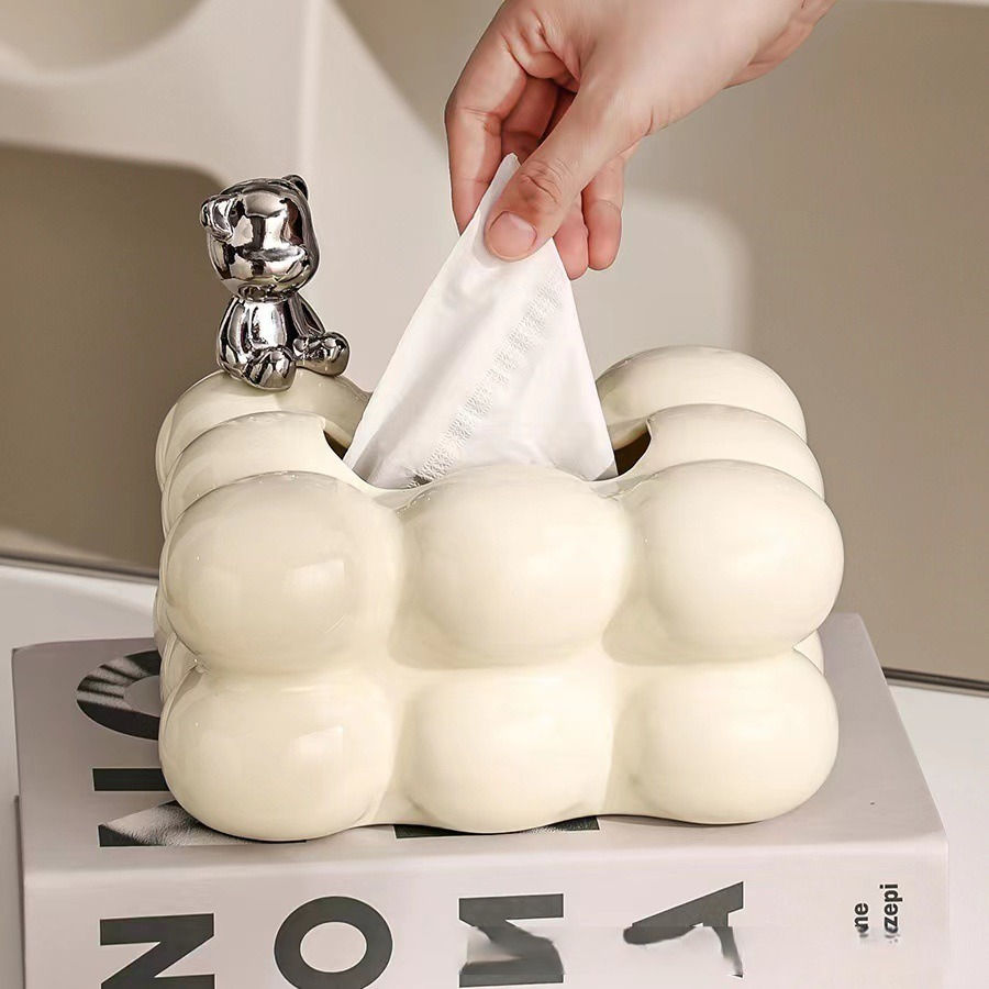 White Ceramic Facial Tissue Box Cover and Toilet Paper Holder for Coffee & Tea Sets
