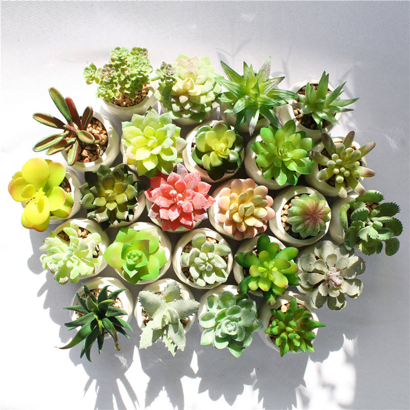 White Ceramic Pot Artificial Succulent Plants Table Mini Landscape Home Balcony Decorations
