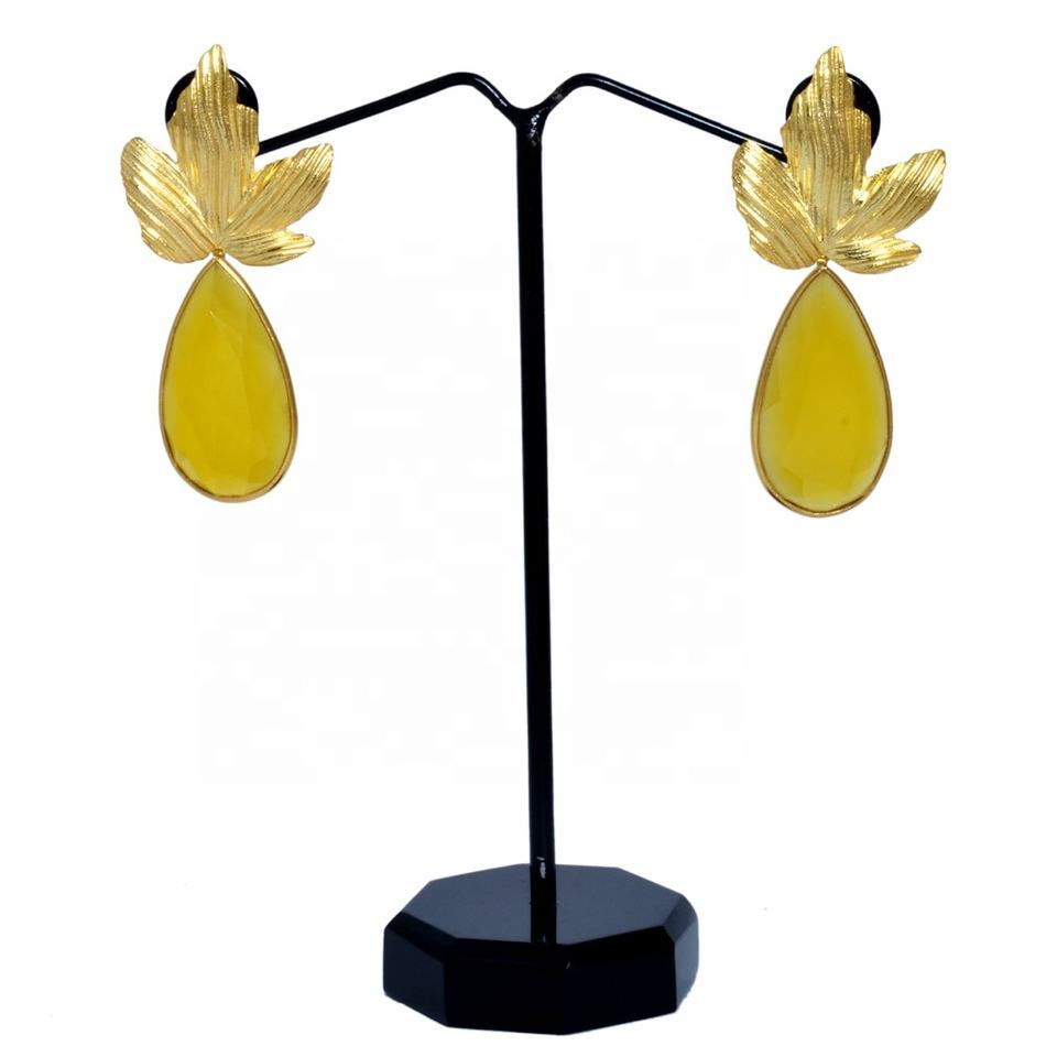 White Chalcedony and Black Onyx Vintage Handmade 18k Gold Plated Natural Jewelry 925 Sterling Silver Gemstone Earrings for Woman