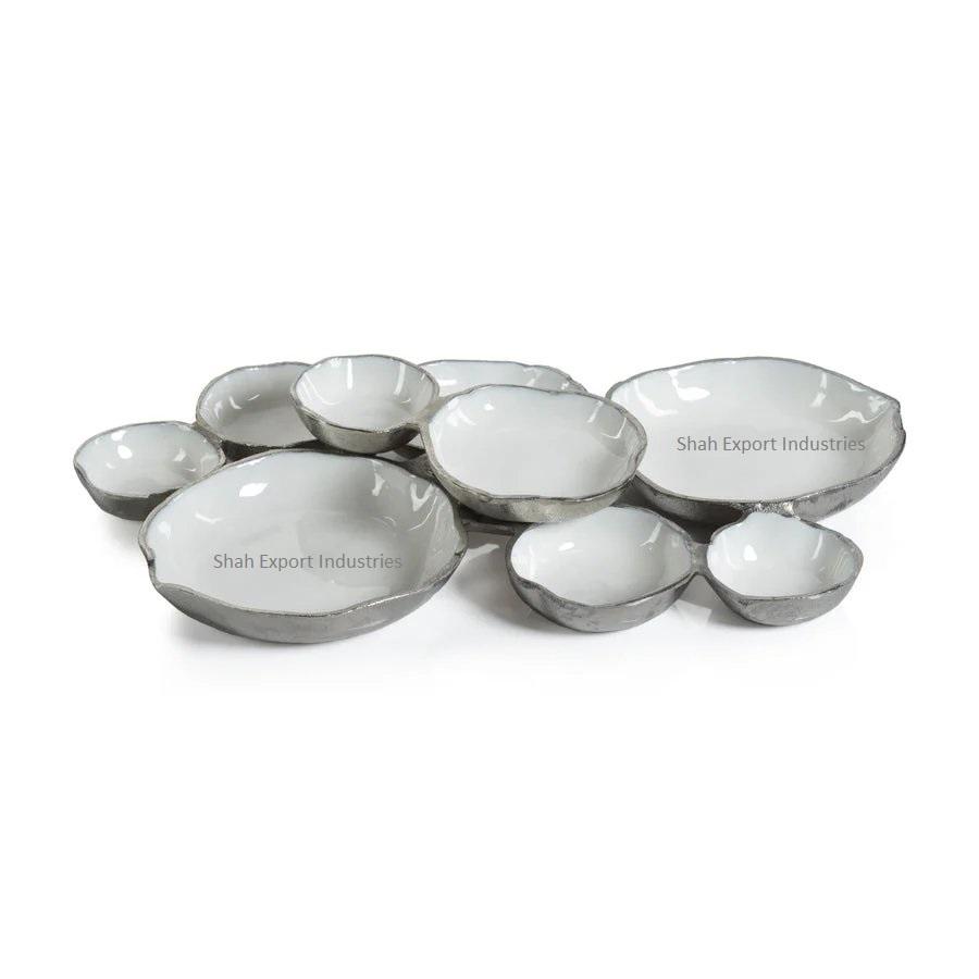 White Coated Aluminum 9 Bowls Cluster for Home & Hotels Tableware Snacks Serving Bowl Multi Compartment Dish & Bowls